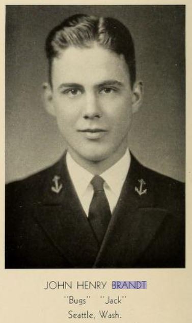 Jack Brandt, whose actual name was John Henry Brandt was born in Washington state. Brandt was a graduate of the U.S. Naval Academy in the class on 1935. According to the Annapolis yearbook “Lucky Bag”, he was sometimes called