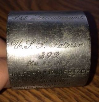 My original musings on this artifact included the question of whether it was on the ship from the day that it was commissioned. I am still working on that question. A picture from Patterson’s wardroom shows the officer’s napkin rings on the table. Due to low detail in the old photo, it is difficult to detect too much. However, the rings appear to be circular and about the same size as the one I have.